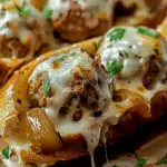 Cheesy French Onion Meatball Subs are a comforting, flavorful twist on a classic sandwich that brings together the rich flavors of caramelized onions, tender meatballs, and melted Swiss cheese. Perfect for a satisfying meal, these subs are easy to prepare and sure to be a family favorite.