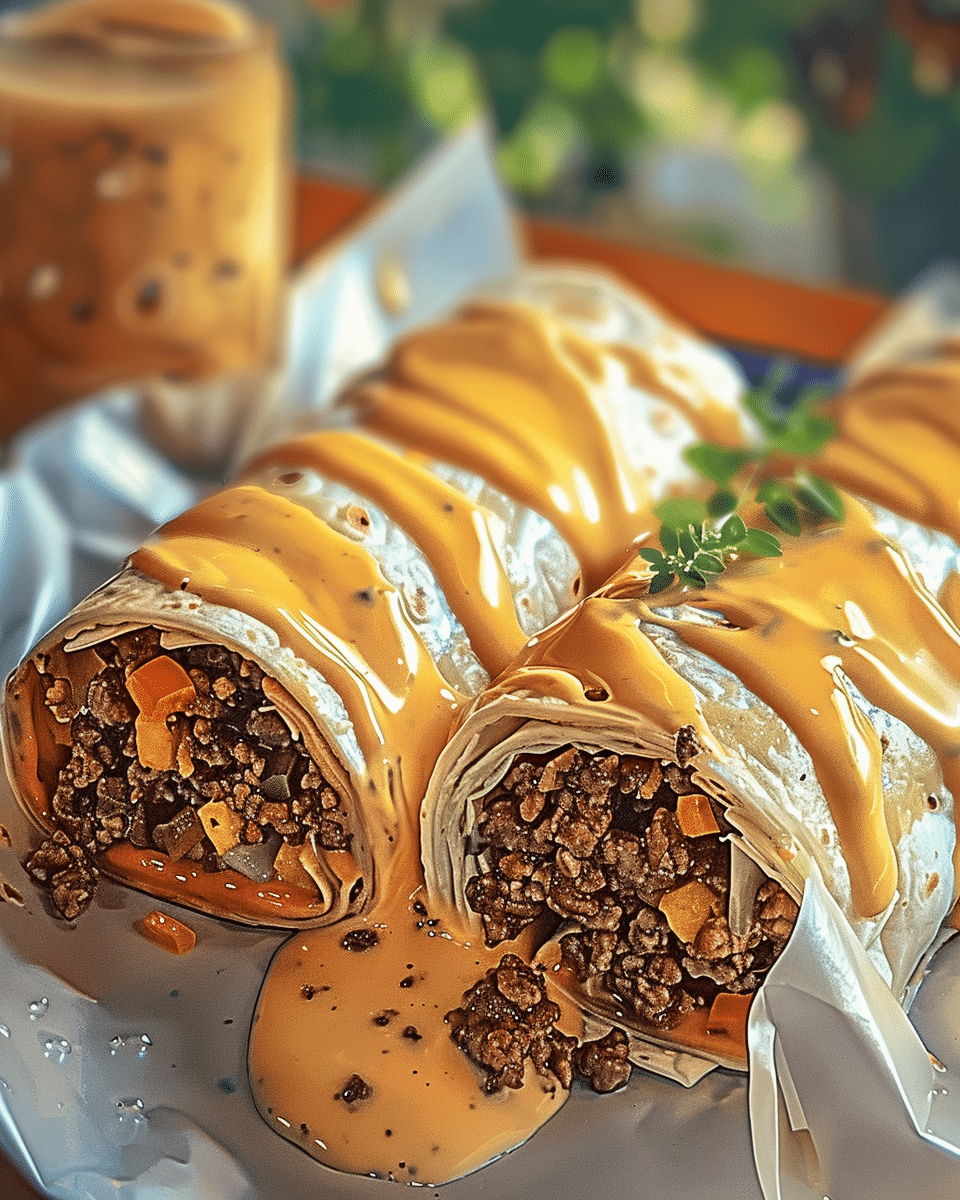 The Cheesy Ground Beef Delight Wrap with Creamy Sauce is a hearty, flavorful meal featuring seasoned ground beef, melty cheese, and a rich creamy sauce all wrapped up in a soft tortilla. Perfect for lunch or dinner, this quick and easy recipe is sure to please the whole family.
